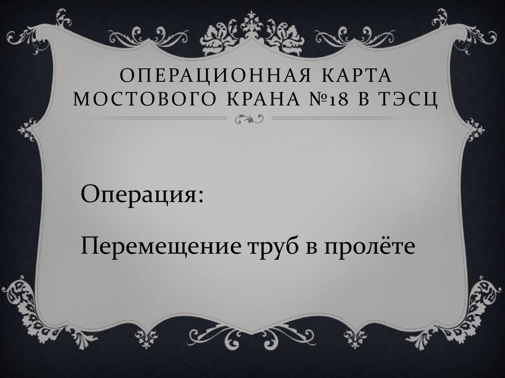 О П Е РА Ц И О Н Н А Я К А Р ТАМ О С ТО В О ГО К РА Н А № 1 8 В Т Э С Ц
