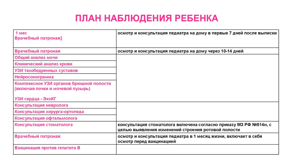 ПЛАН НАБЛЮДЕНИЯ РЕБЕНКА1 мес