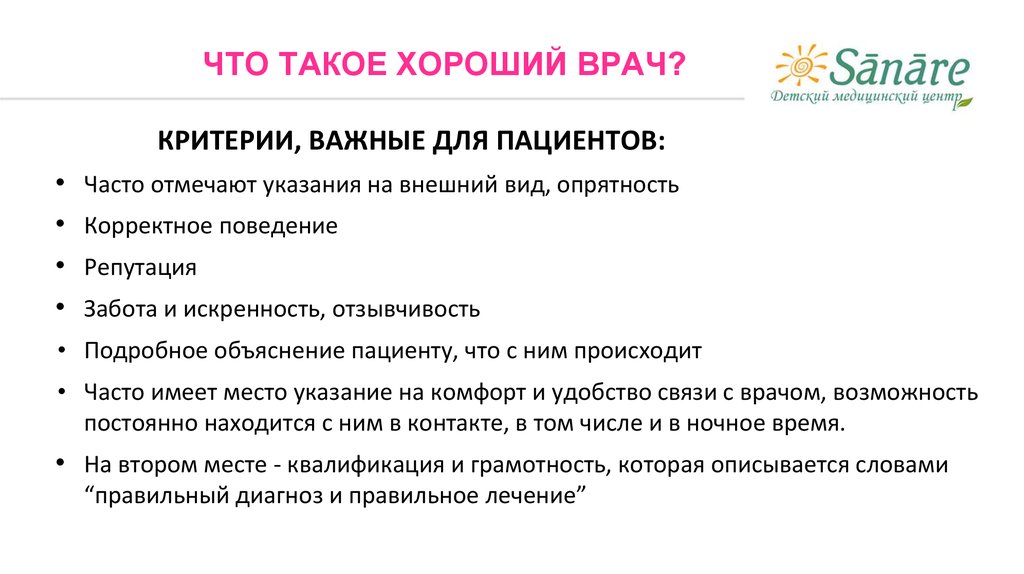 ЧТО ТАКОЕ ХОРОШИЙ ВРАЧ?КРИТЕРИИ, ВАЖНЫЕ ДЛЯ ПАЦИЕНТОВ: