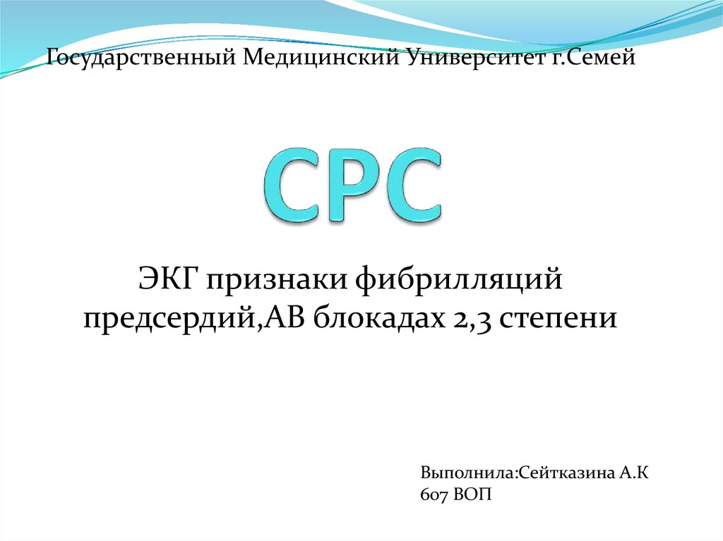 Государственный Медицинский Университет г.СемейЭКГ признаки фибрилляций