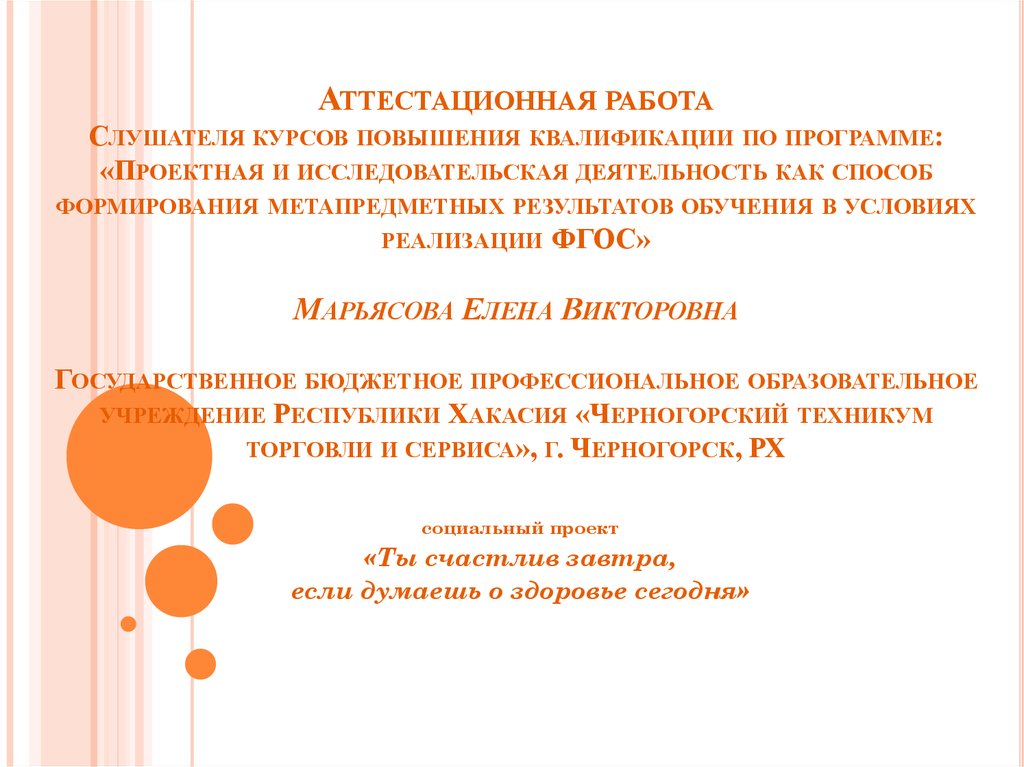 1. Аттестационная работа Слушателя курсов повышения квалификации по программе: «Проектная и исследовательская деятельность как