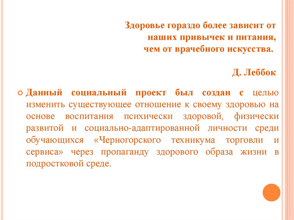 6. Цель проекта: Содействие в формировании у обучающихся сознательной потребности в ведении здорового образа жизни и пропаганда