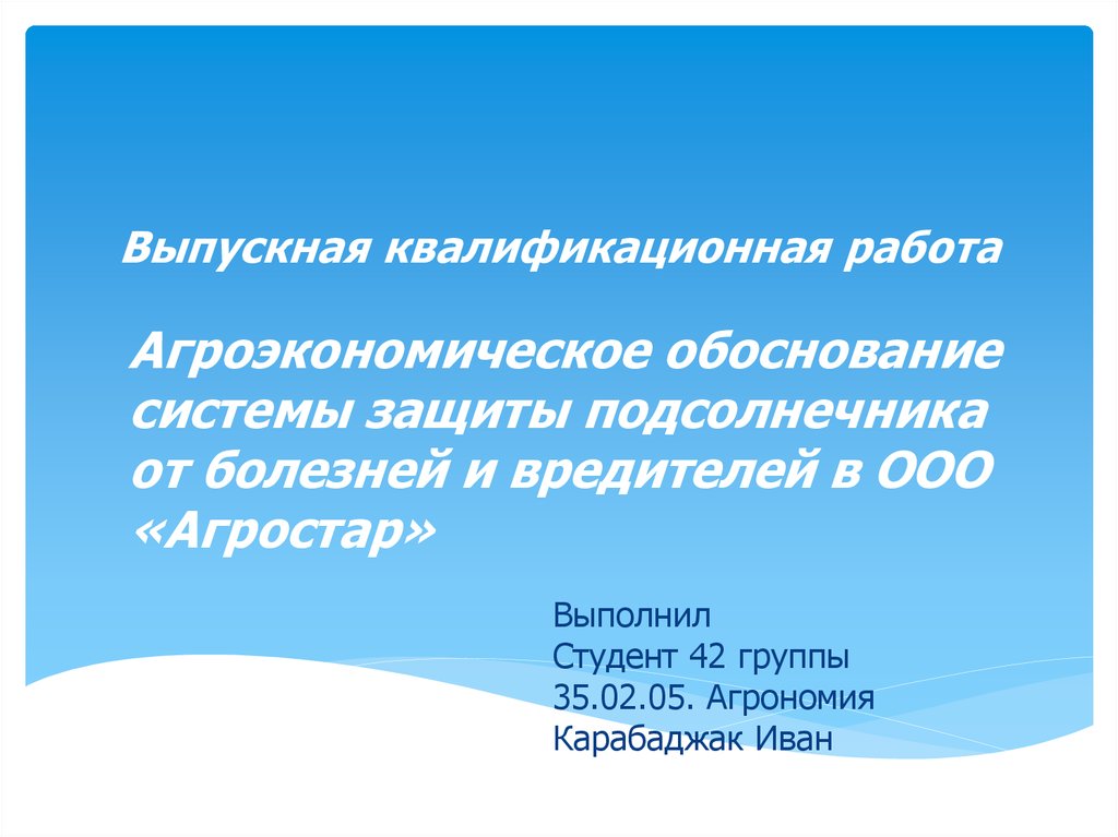 Агроэкономическое обоснованиесистемы защиты подсолнечника