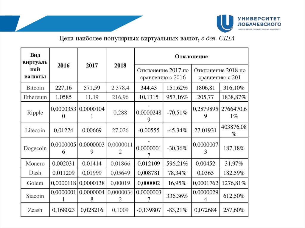 Цена наиболее популярных виртуальных валют, в дол. СШАВид