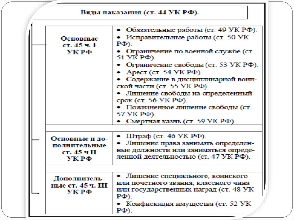 20. ПОНЯТИЕ И ЦЕЛИ НАКАЗАНИЯ, ЕГО СИСТЕМА И ВИДЫ