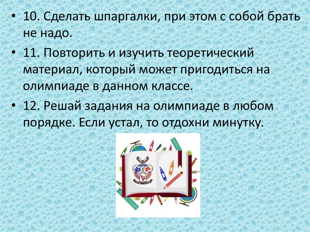• 12. Решай задания на олимпиаде в любом