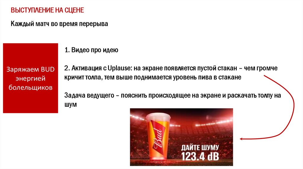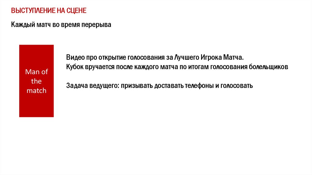ВЫСТУПЛЕНИЕ НА СЦЕНЕКаждый матч во время перерыва