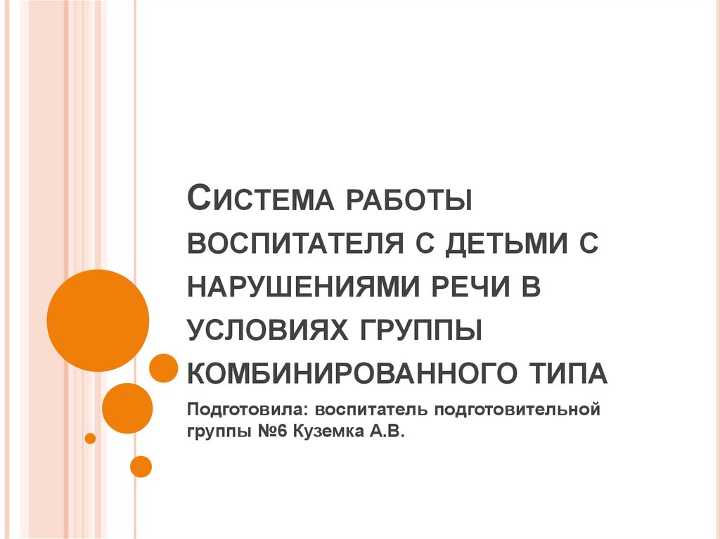 1. Система работы воспитателя с детьми с нарушениями речи в условиях группы комбинированного типа