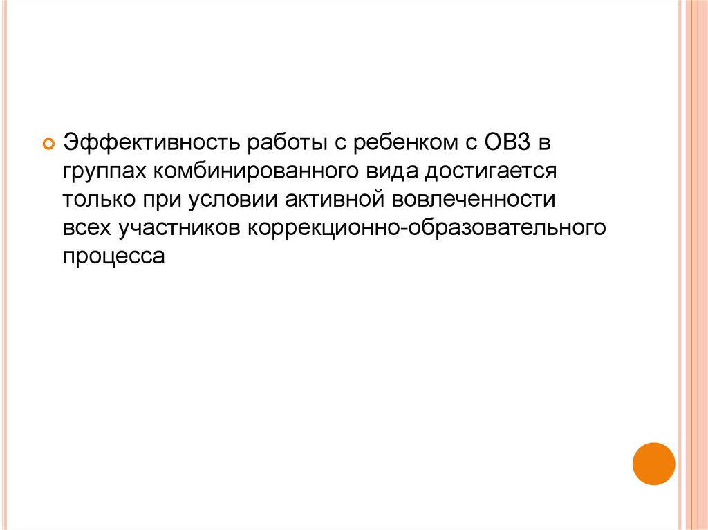 Эффективность работы с ребенком с ОВЗ вгруппах комбинированного вида достигается