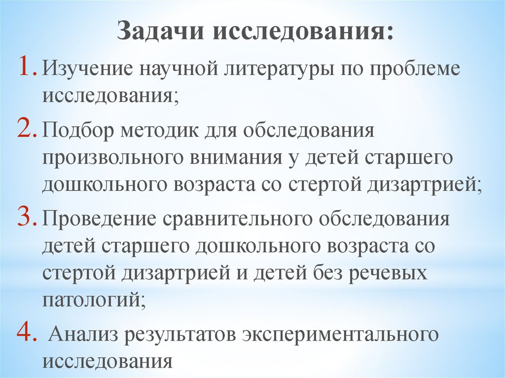 Задачи исследования:1. Изучение научной литературы по проблеме