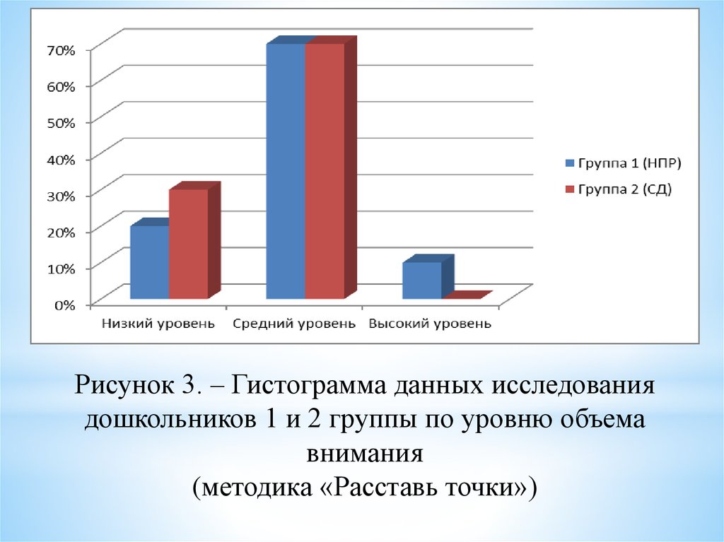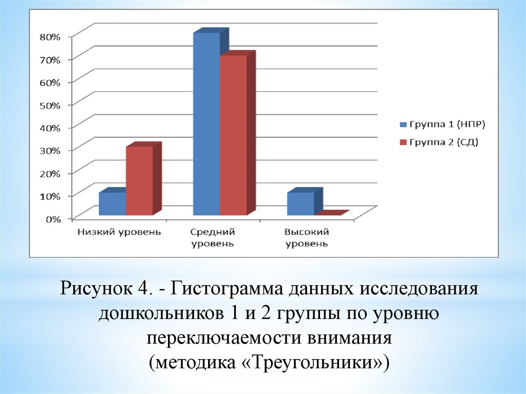 Рисунок 4. - Гистограмма данных исследованиядошкольников 1 и 2 группы по уровню