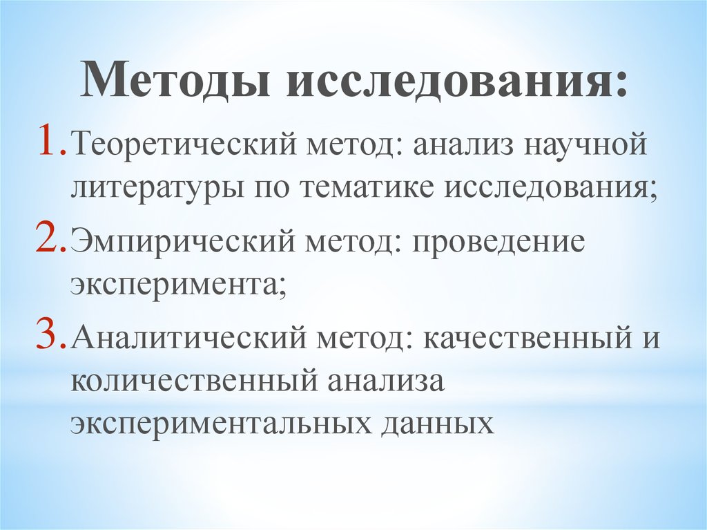 Методы исследования:1.Теоретический метод: анализ научной