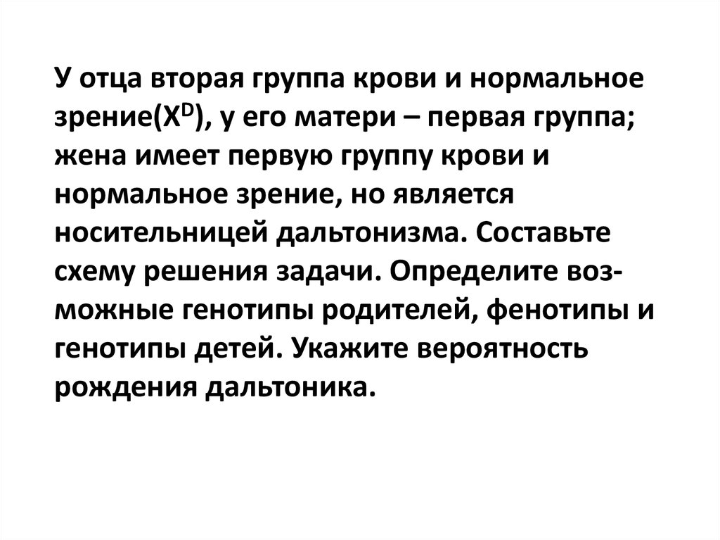 У отца вторая группа крови и нормальноезрение(ХD), у его матери – первая группа;