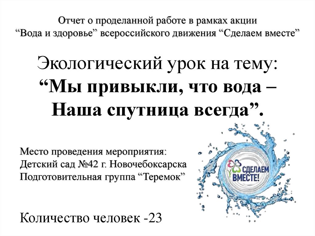 Отчет о проделанной работе в рамках акции“Вода и здоровье” всероссийского движения “Сделаем вместе”