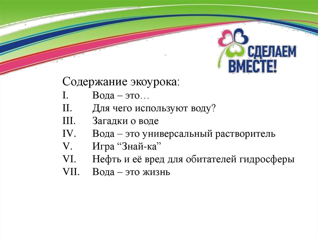 Содержание экоурока:I.