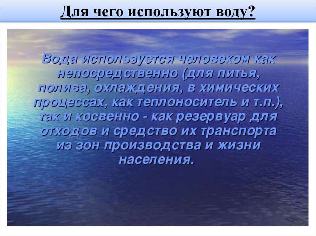 Для чего используют воду?