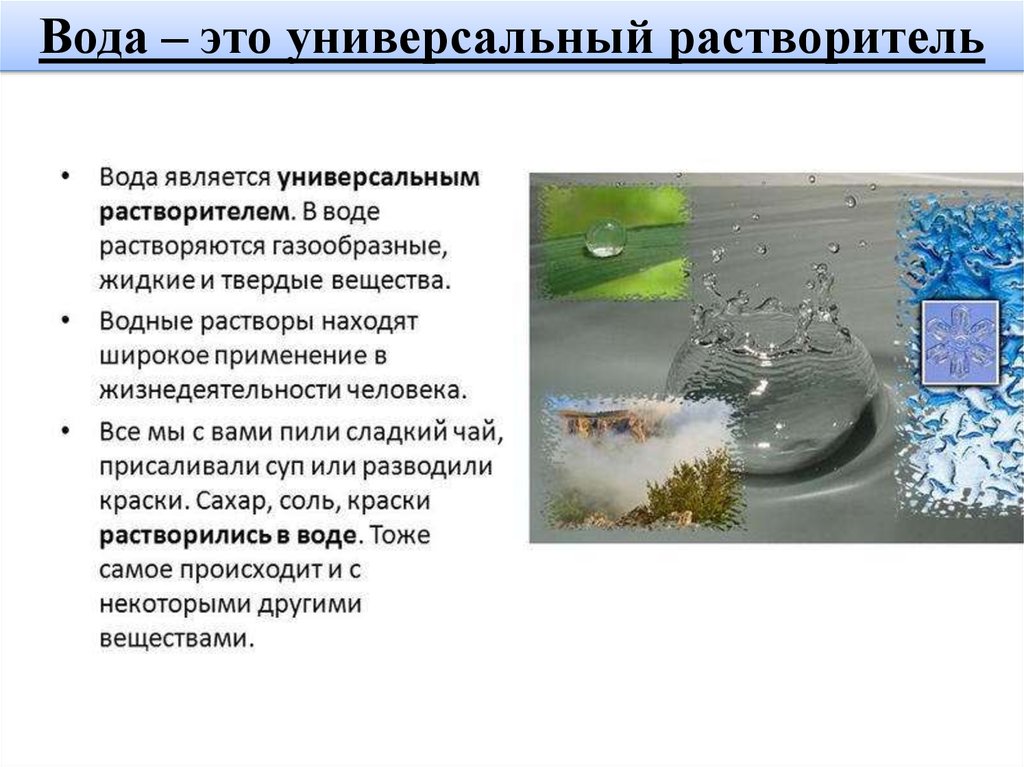 Вода – это универсальный растворитель