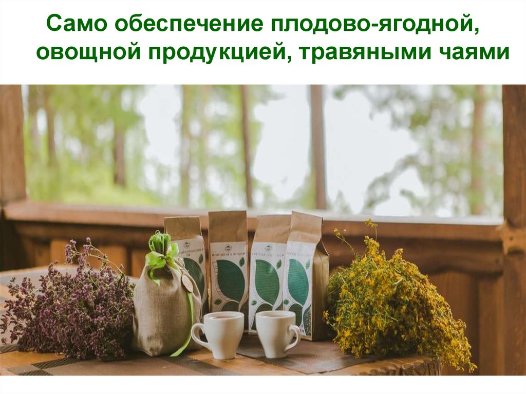 Само обеспечение плодово-ягодной,овощной продукцией, травяными чаями