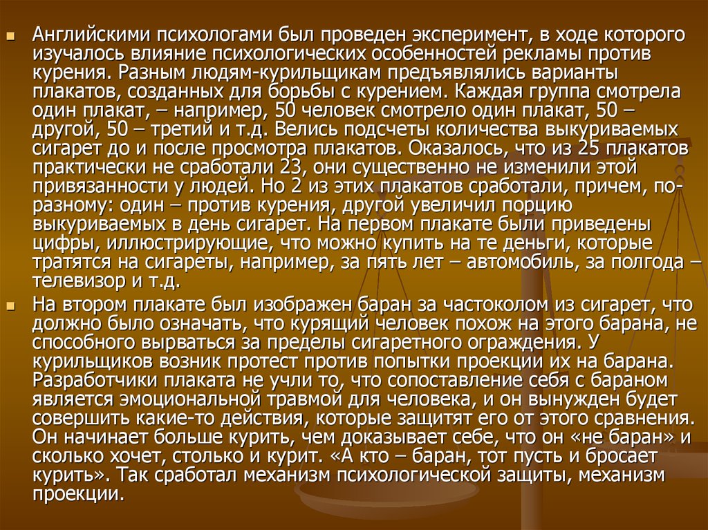 курить». Так сработал механизм психологической защиты, механизм