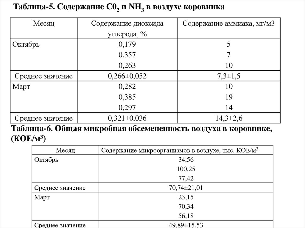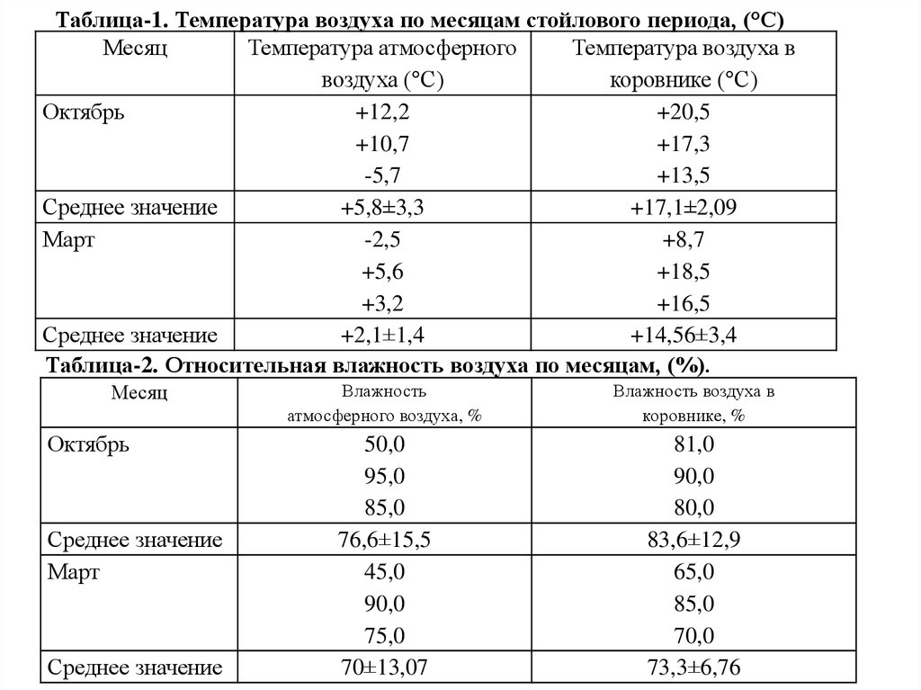 Таблица-1. Температура воздуха по месяцам стойлового периода, (°С)Месяц