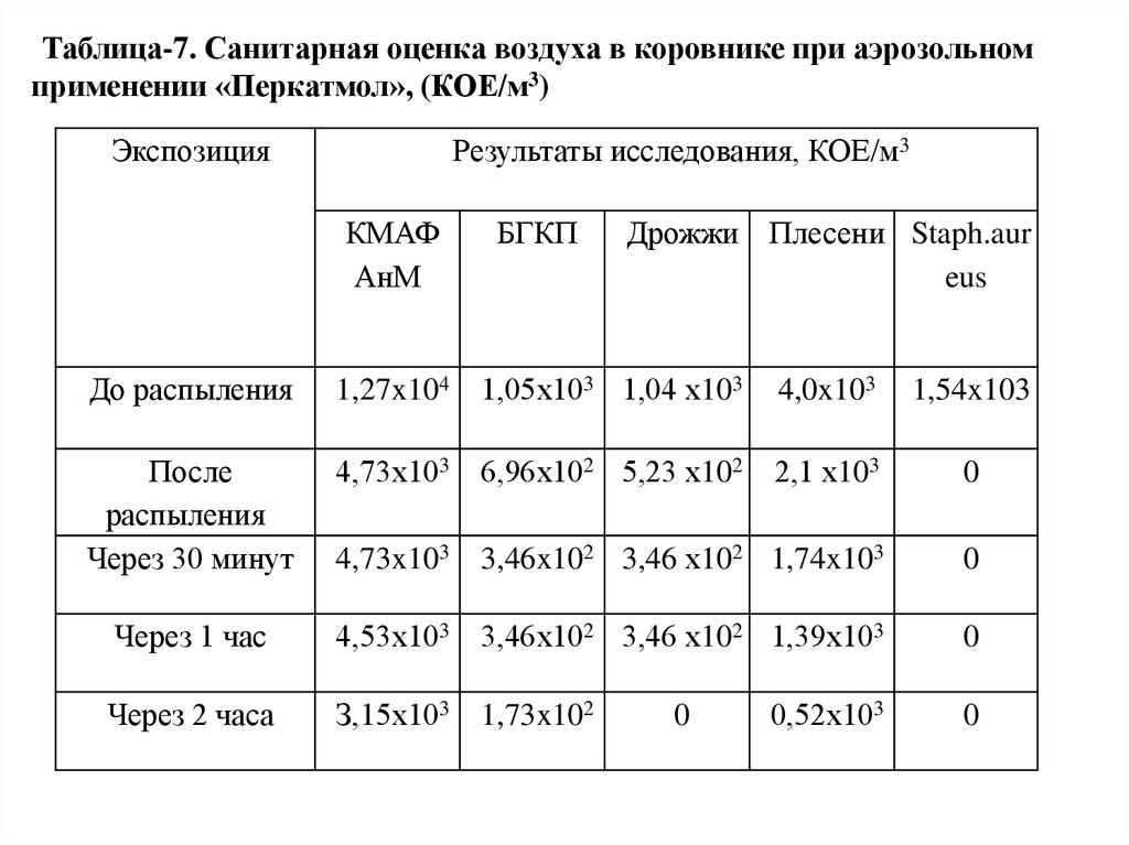 обнаружены, a Staph, aureus - сразу после распыления Перкатмол.