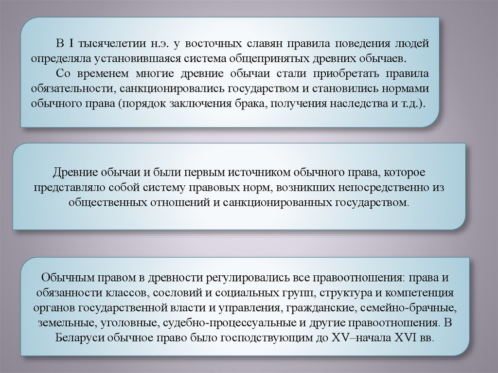 Беларуси обычное право было господствующим до XV–начала XVI вв.
