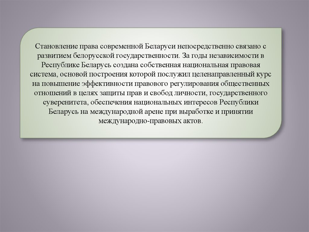 Становление права современной Беларуси непосредственно связано сразвитием белорусской государственности. За годы независимости в