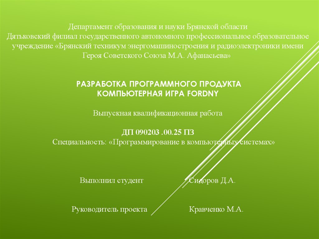 Департамент образования и науки Брянской областиДятьковский филиал государственного автономного профессиональное образовательное