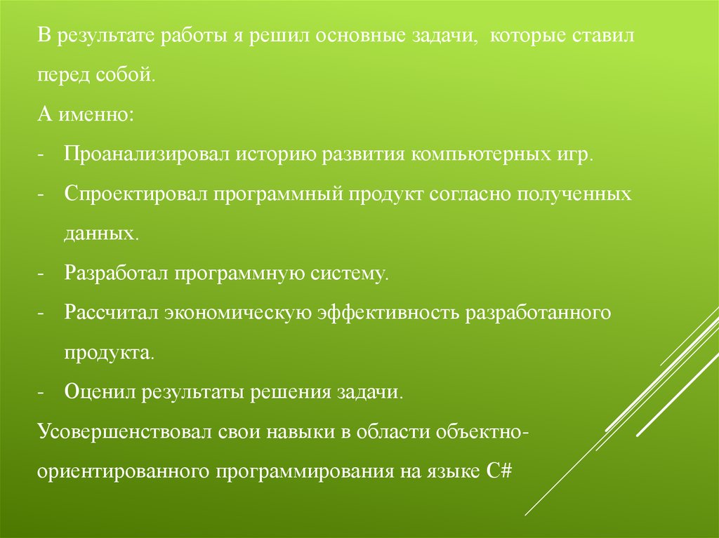 В результате работы я решил основные задачи, которые ставилперед собой.