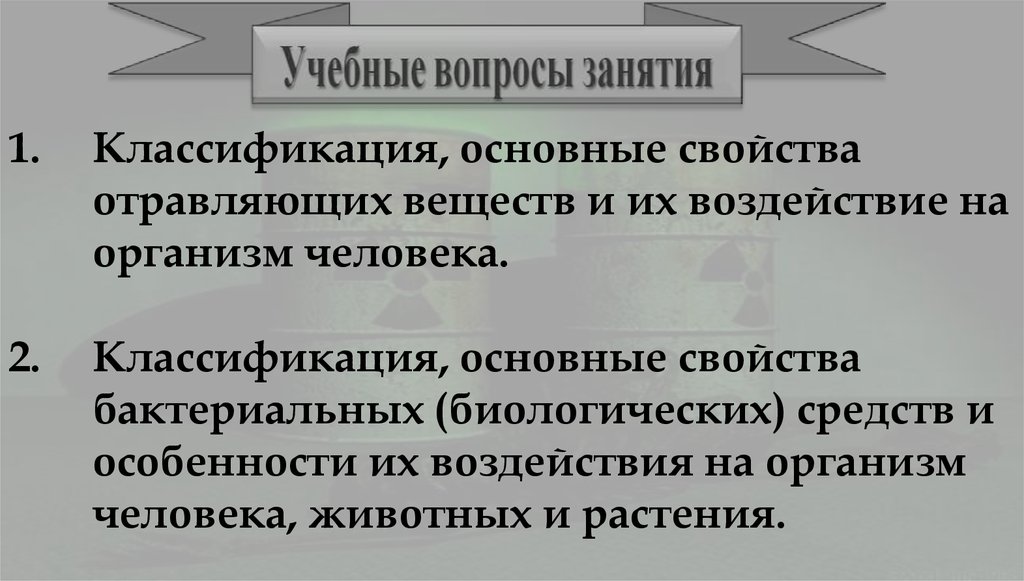 Классификация, основные свойства отравляющих веществ, бактериальных средств и их воздействие на организм человека