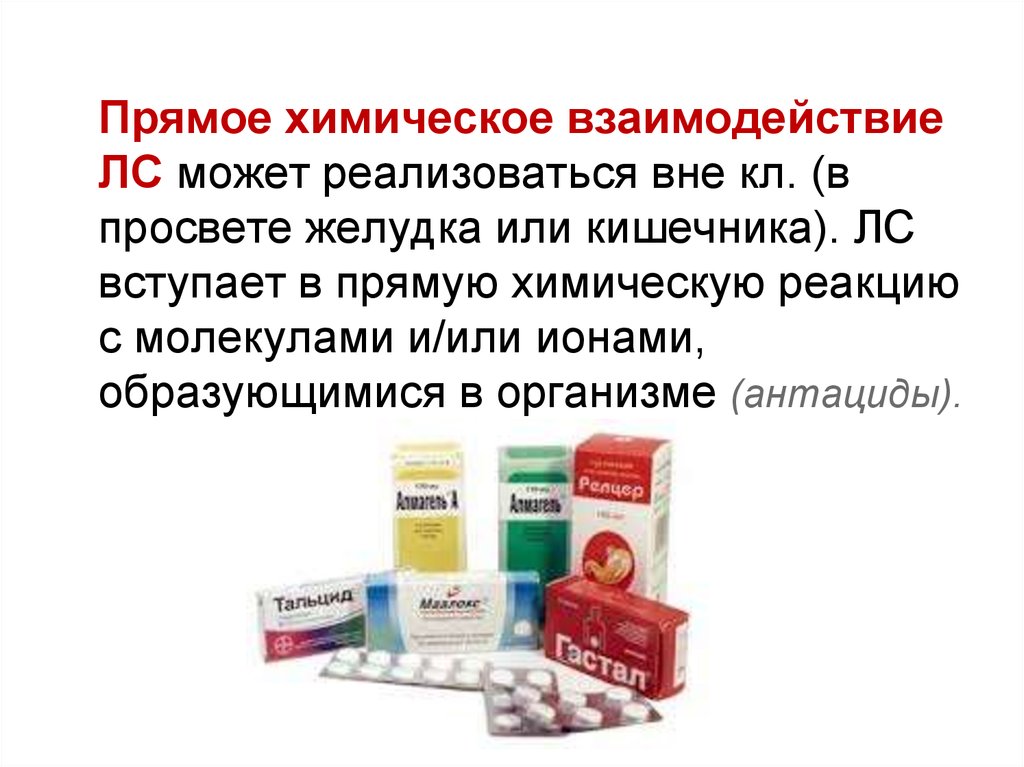 Прямое химическое взаимодействиеЛС может реализоваться вне кл. (в