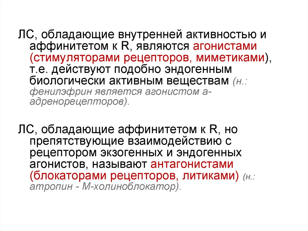 Виды воздействия ЛС на клеткимишени:1) возбуждающее — стимулирующее физиологическую