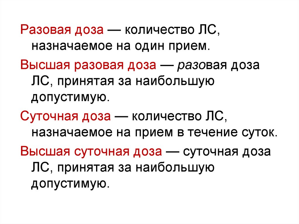 Курсовая доза — количество ЛС,назначаемое на весь курс лечения.