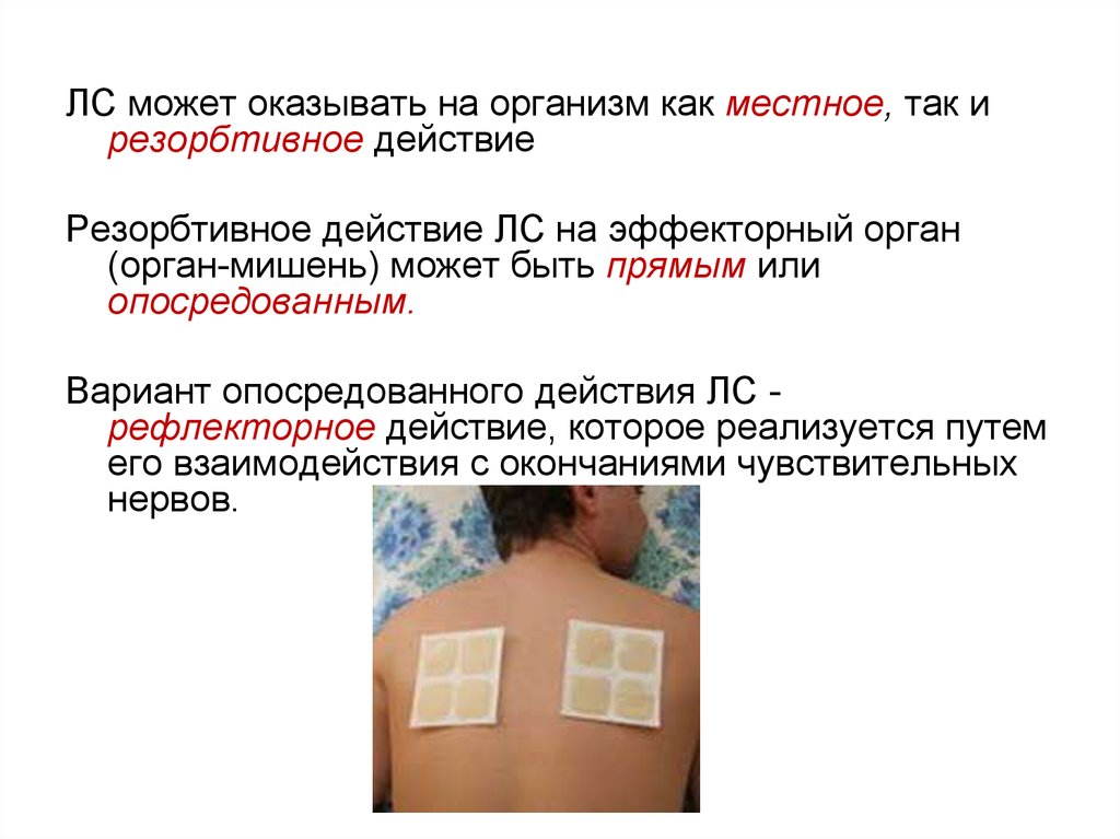 ЛС может оказывать на организм как местное, так ирезорбтивное действие
