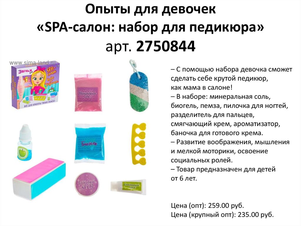 Опыты для девочек«SPA-салон: набор для педикюра»
