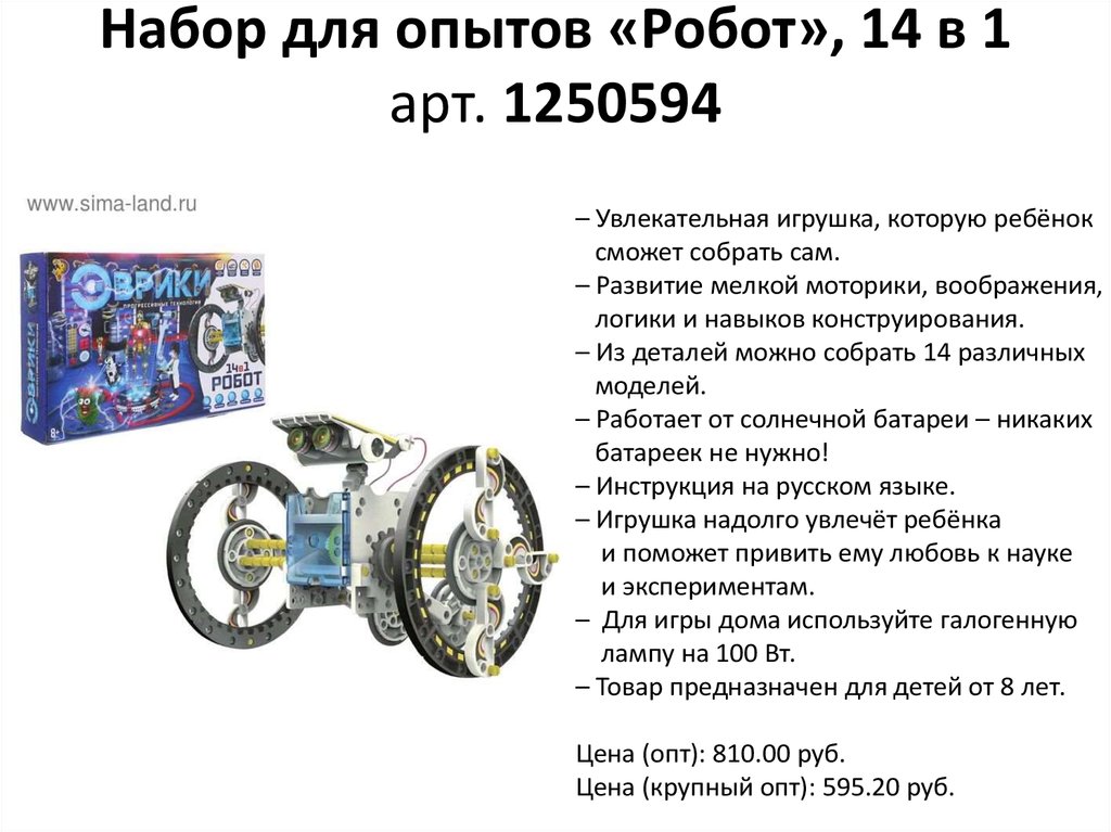 Набор для опытов «Робот», 14 в 1арт. 1250594