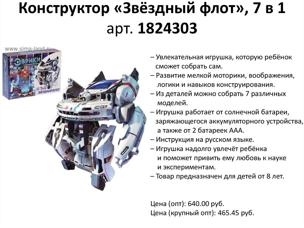 – Товар предназначен для детей от 8 лет.