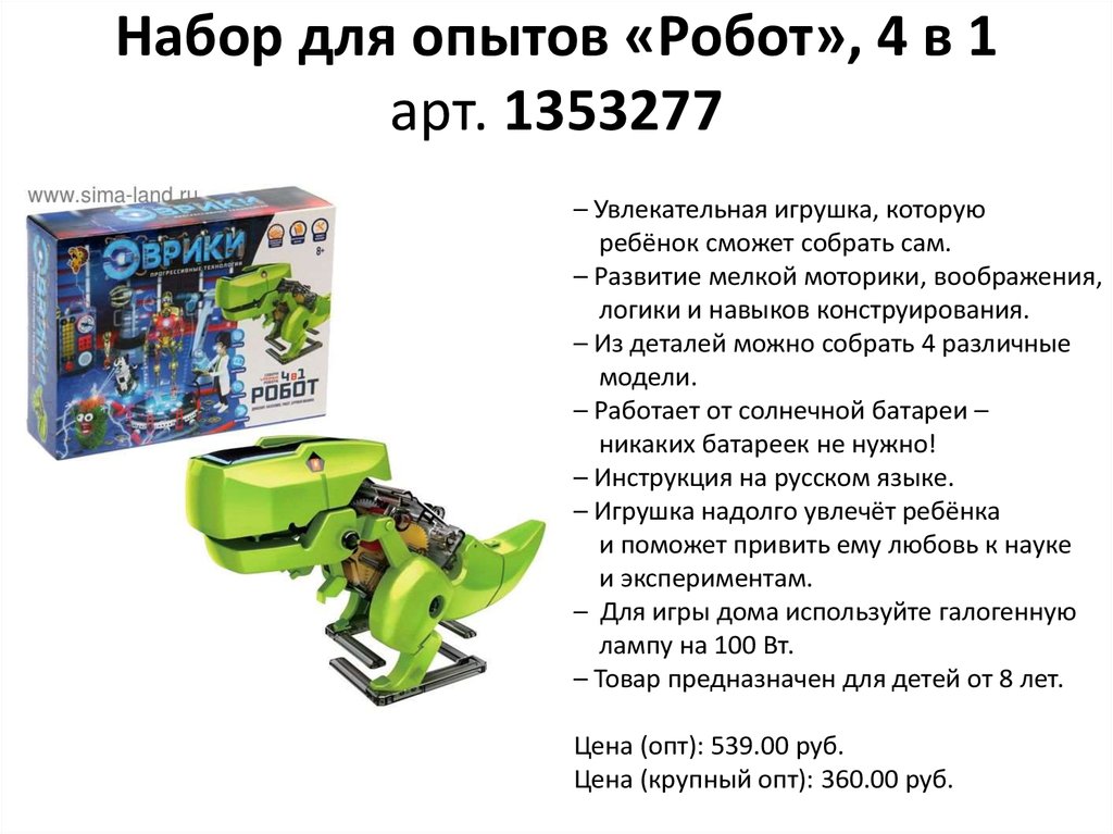 Набор для опытов «Робот», 4 в 1арт. 1353277