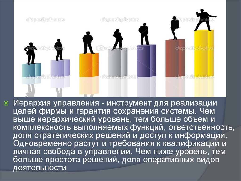 Иерархия управления - инструмент для реализациицелей фирмы и гарантия сохранения системы. Чем