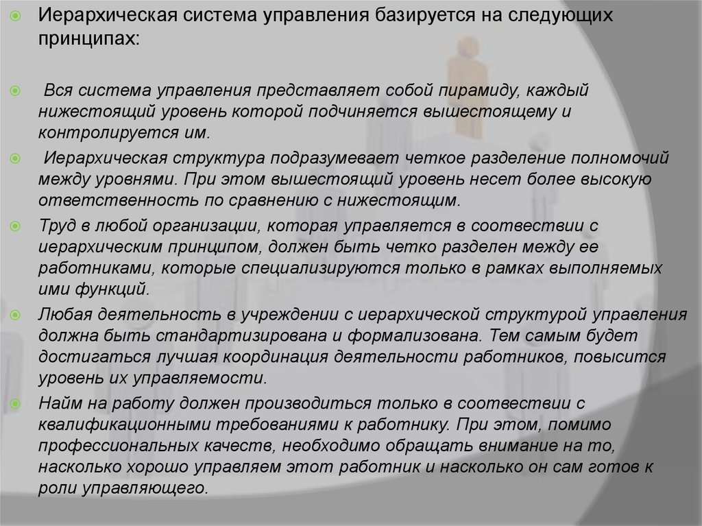 Иерархическая система управления базируется на следующихпринципах: