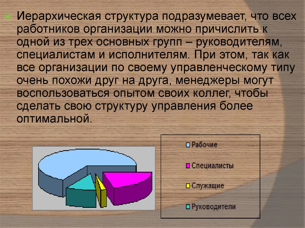 Иерархическая структура подразумевает, что всехработников организации можно причислить к