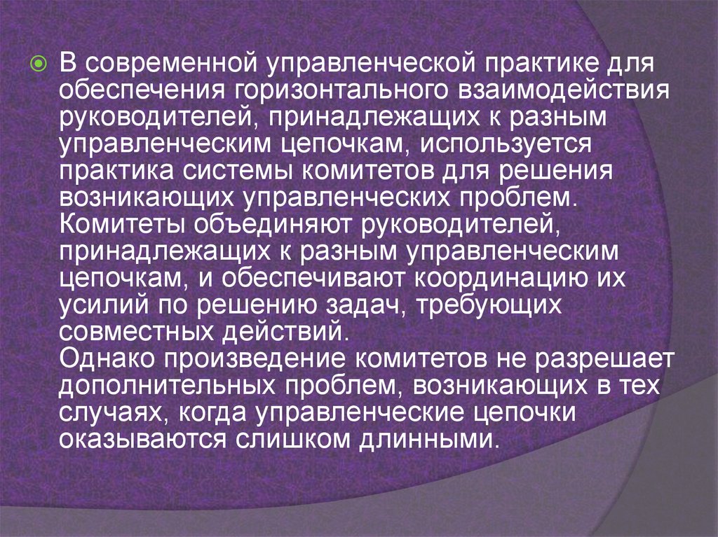 В современной управленческой практике дляобеспечения горизонтального взаимодействия