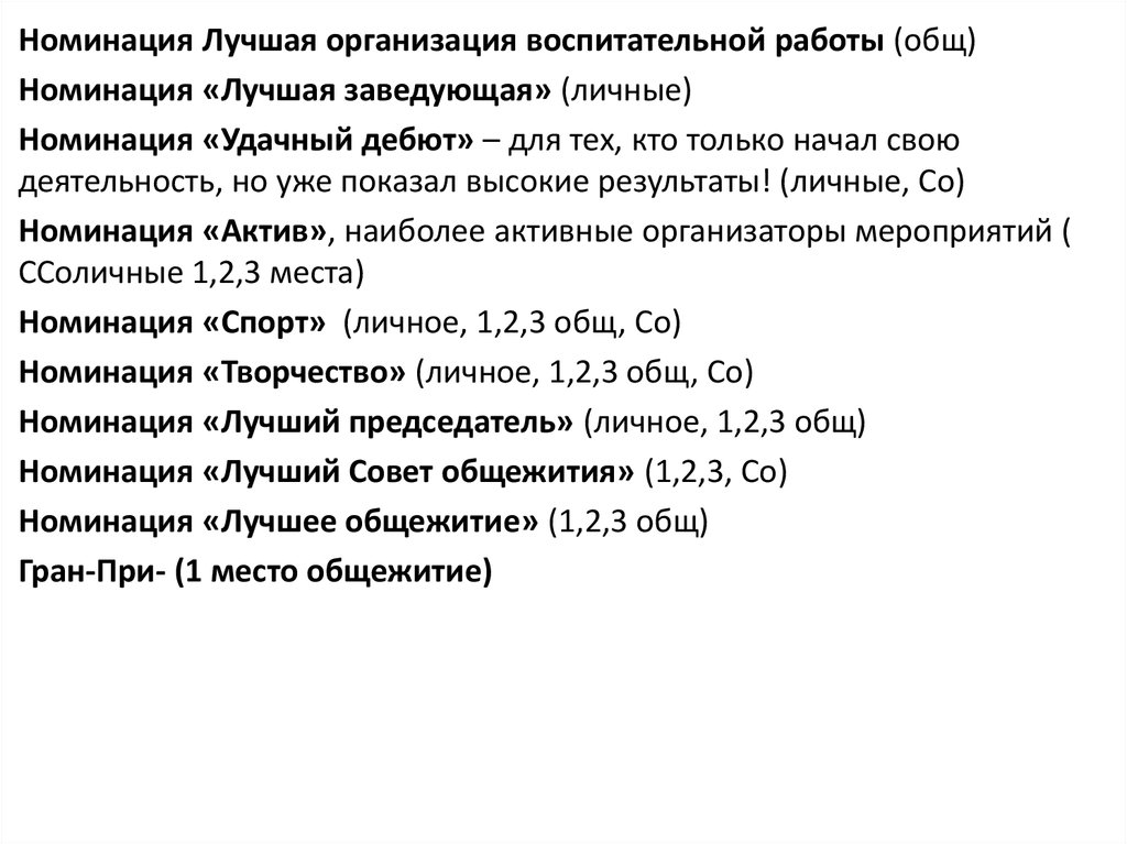 Номинация «Лучший Совет общежития» (1,2,3, Со)