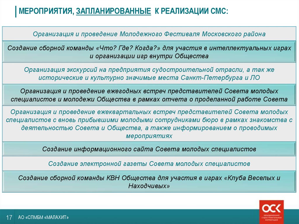 - Организация экскурсий для молодых специалистов внутри Общества и в