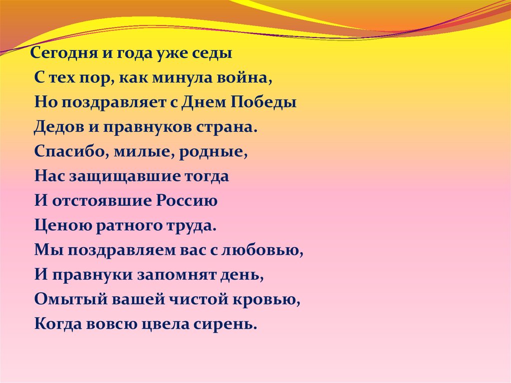 Сегодня и года уже седыС тех пор, как минула война,