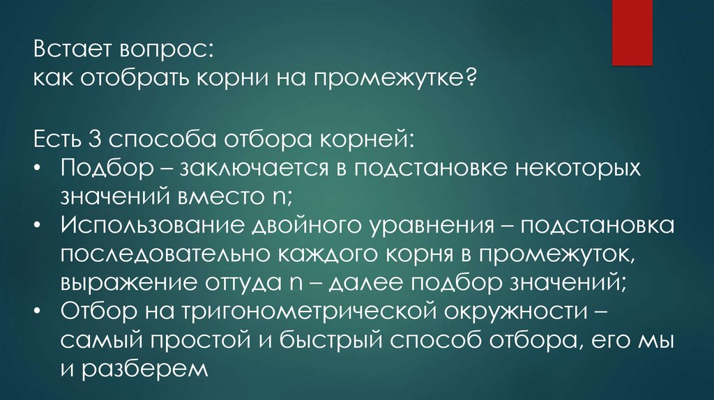 Отбор корней в тригонометрических уравнениях