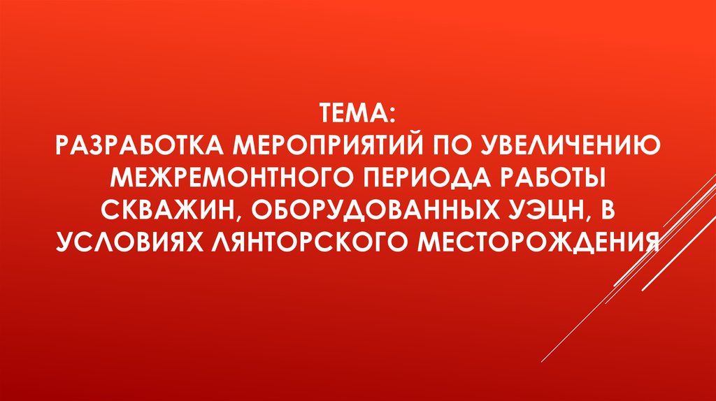 2. ТЕМА: РАЗРАБОТКА МЕРОПРИЯТИЙ ПО УВЕЛИЧЕНИЮ МЕЖРЕМОНТНОГО ПЕРИОДА РАБОТЫ СКВАЖИН, ОБОРУДОВАННЫХ УЭЦН, В УСЛОВИЯХ ЛЯНТОРСКОГО