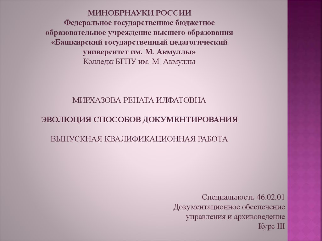 Объект выпускной квалификационнойработы – документы.