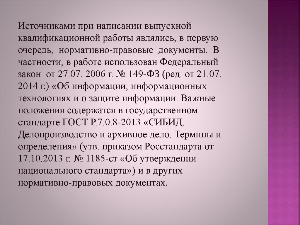 Источниками при написании выпускнойквалификационной работы являлись, в первую