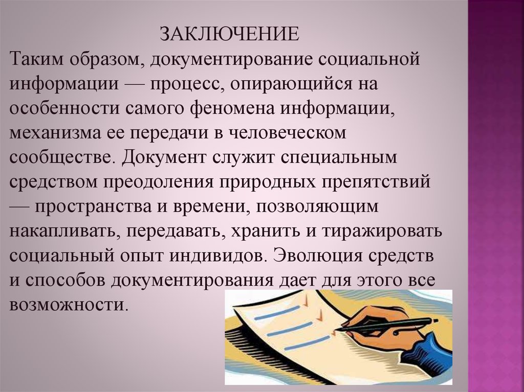 ЗАКЛЮЧЕНИЕТаким образом, документирование социальной